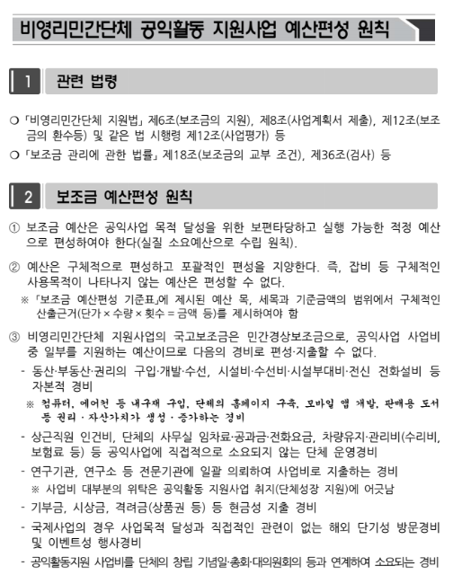 2025년 비영리민간단체 공익활동 지원사업 집행지침 중 예산편성 부분 @행정안전부