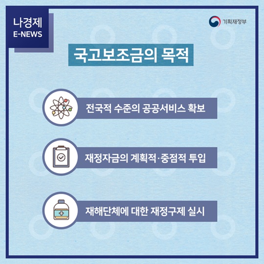 정부에서 발표한 국고보조금의 목적 @대한민국정책브리핑(2017)